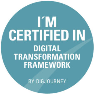 Genom DigJourney har Patrik en certifiering i Digital Transformation Framework. Certifieringen garanterar avgörande kunskaper, verktyg och metoder för att engagera och leda organisationer genom en digital transformation.